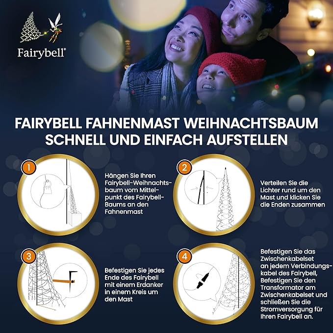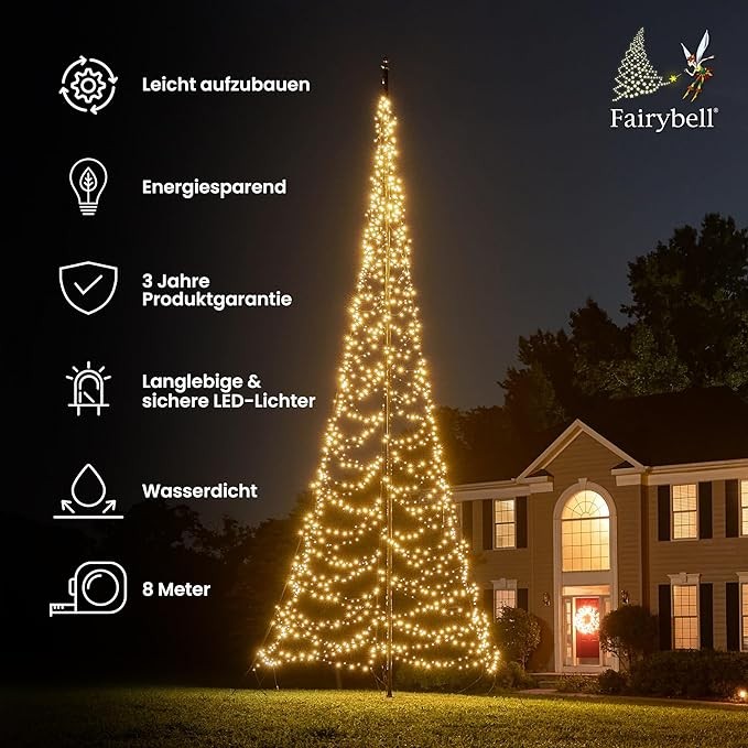 Fairybell LED Christmas tree for outdoor use Flagpole - 8m - 1500 LED lights - Warm white with twill